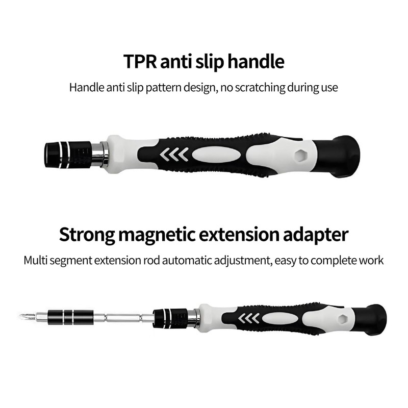 - Ergonomic & Anti-Slip Design – Rotating magnetic handle with cushioned grip reduces hand fatigue. Flexible extension rod tackles hard-to-reach screws securely
