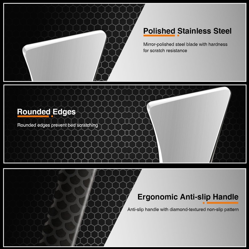 • Large Model Removal Specialist: 2.3×1.2-inch blade surface handles big prints; R2.0 rounded edges prevent bed scratching; Compatible with ABS/PLA/PETG/TPU on glass/PEI/metal beds