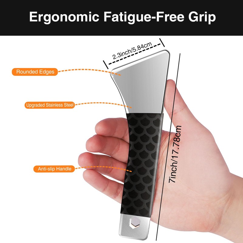 • Premium Stainless Steel Construction :Mirror-polished steel blade with hardness for scratch resistance; Rust-proof material maintains edge sharpness; 0.5mm ultra-thin design slides under stubborn prints