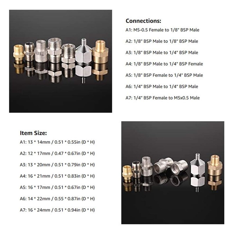 Professional Airbrush Adaptor Kit with 7pcs BSP Connectors,Brass Material,Easy to Replace for Compressor Airbrush Hose