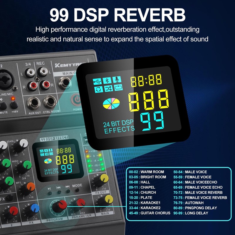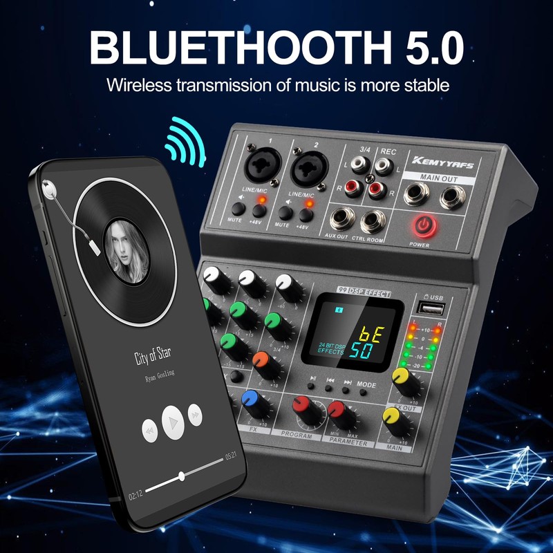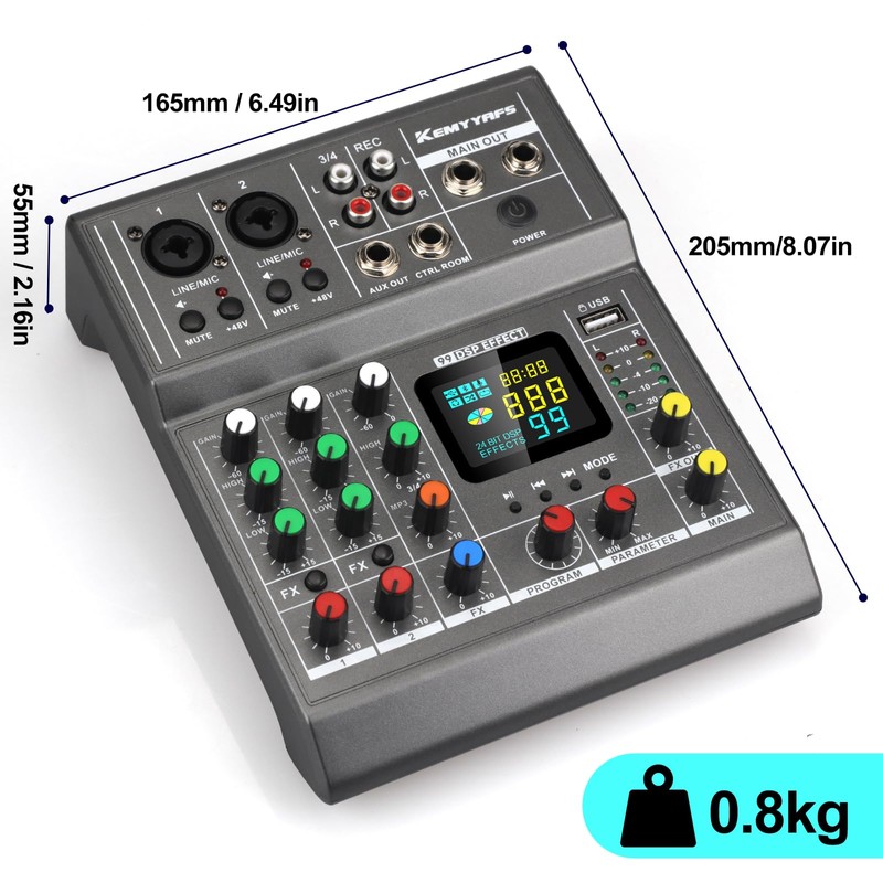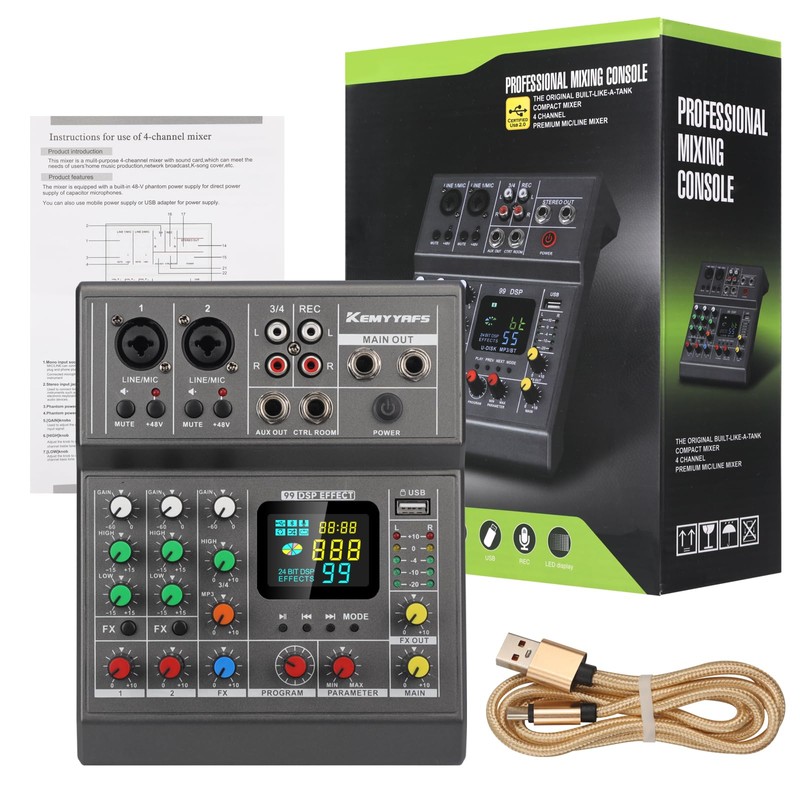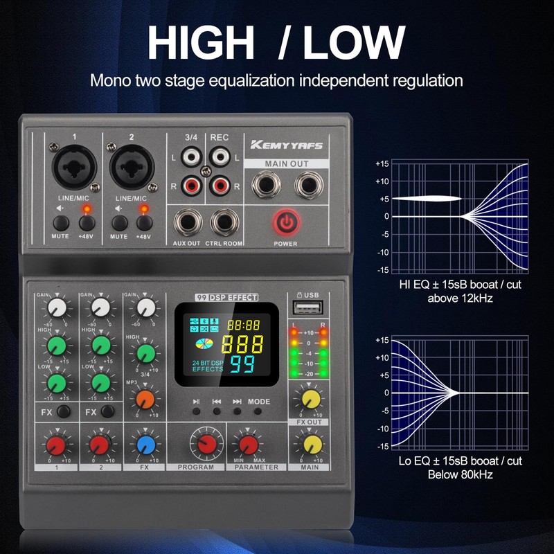 Professional Audio Mixer, Sound Board with 4 Channel Mixer USB Bluetooth Echo Delay Effect 99DSP, 48V Phantom Power Stereo Mixer board for Karaoke Studio Recording, Live Streaming,Podcasting
