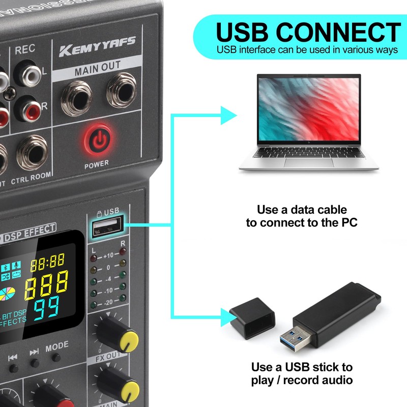 - Mic Line + Stereo Line Input: The Mini Mixing Console is great for multiple devices connectivity.2 XLR Lines input jack to connect mics or guitar, 1 pair L/R 6.35mm and 1 pair L/R RCA stereo inputs to connect CD plays/keyboard/computer. Plus 1 pair L/R RCA output and 1 pair L/R 6.35mm Main output to connect Active Speakers/Power Amplifier/Active sound system/Trolley Active Speaker.(Note: It is not possible to connect an output device with Bluetooth, and it can only be compatible with active)