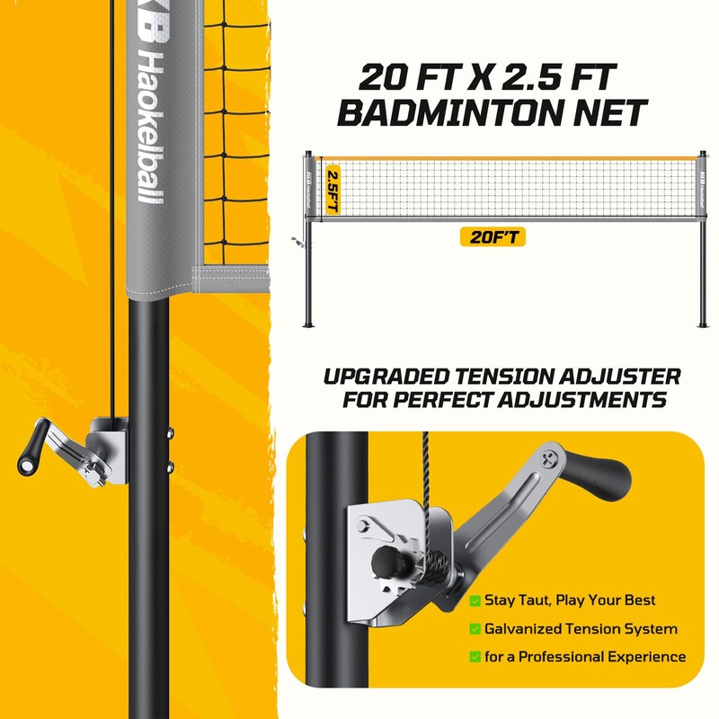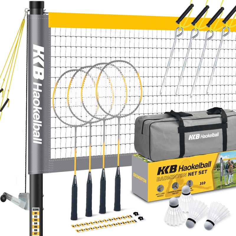 Haokelball Professional Badminton Set with Anti-Sag Design, Portable Badminton Net, Carbon Aluminum Rackets Set of 4, Sturdy 1.25" Steel Frame, 4 Shuttlecocks, Carry Bag, Badminton Sets for Backyards