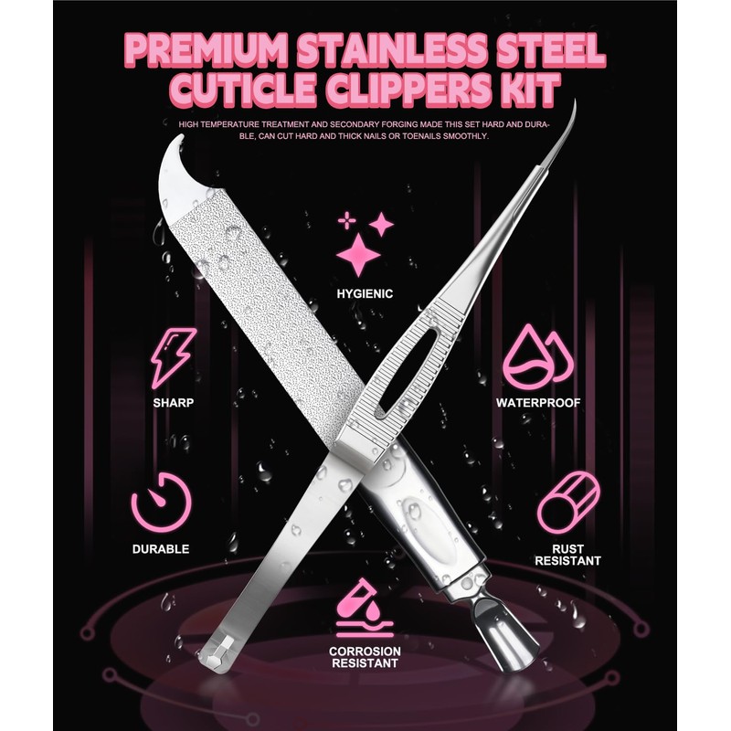 - 3.RSATILE CUTICLE PUSHER: Professionally U-shaped tool makes cuticle shaping simple, the hook-like ends at the other side for cleaning.