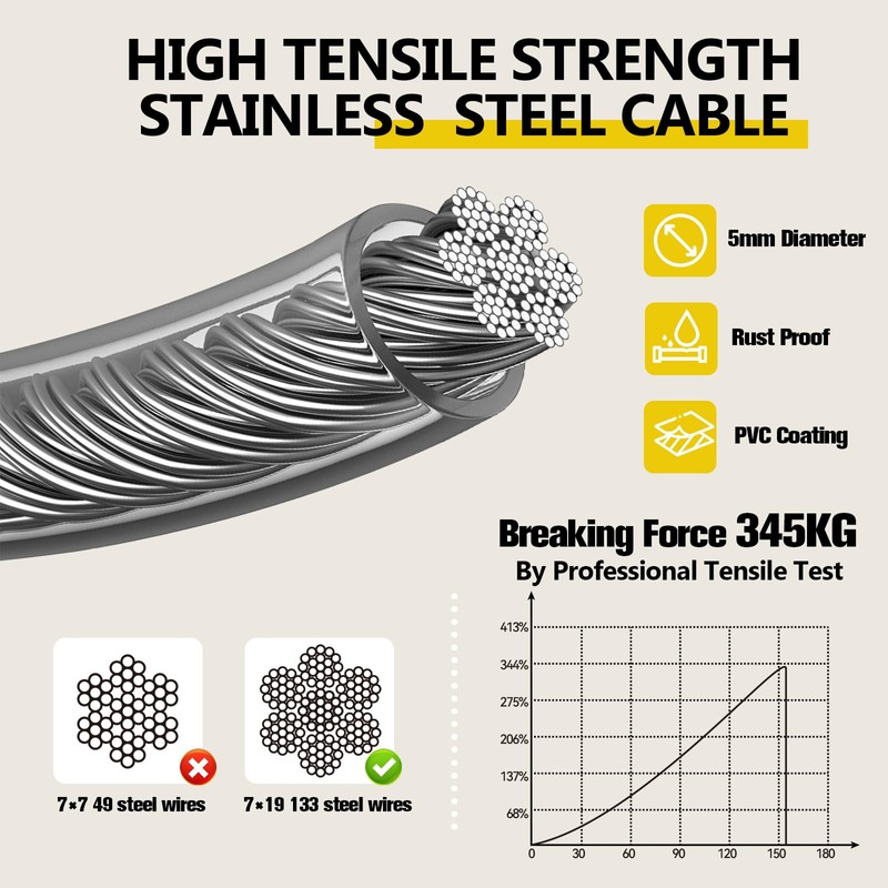 - 【Safer Outdoor Experience】Our dog run cable features a shock-absorbing spring to reduce the pulling force and prevent your dog from getting injured. Unlike tie-out stakes, it eliminates obstacles on the ground, giving your pet more outdoor freedom while remaining safely tethered.