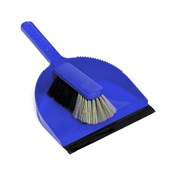 Professional Dustpan Set Blue Plastic with Lip Large Complete Brush and Shovel