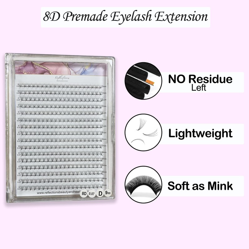 Professional Eyelashes Extension Set - 8D 0.07D Curl Lash Extensions - Volume Lash Extensions Eyelash Tray - Premade Fans 9-15mm Eyelash Extensions - Soft False Eyelashes Cluster (0.07D/Mix 8D)