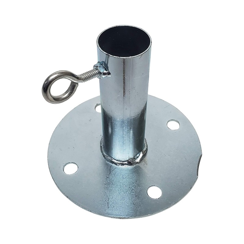 Canopy Pole Foot Pad. Equipped with Adjustable Eye-Bolt Tightening Screw. 1/16" Thick Steel. Tri-Hole Foot Pad Design for Hardware Ground Anchoring.