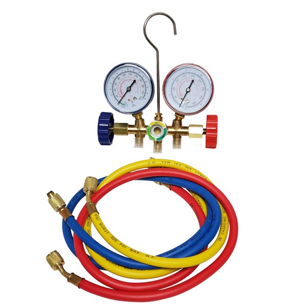 Professional EZ Travel Collection R22 and R12 Manifold Gauge Set HVAC Refrigeration Charging (3ft Hose)
