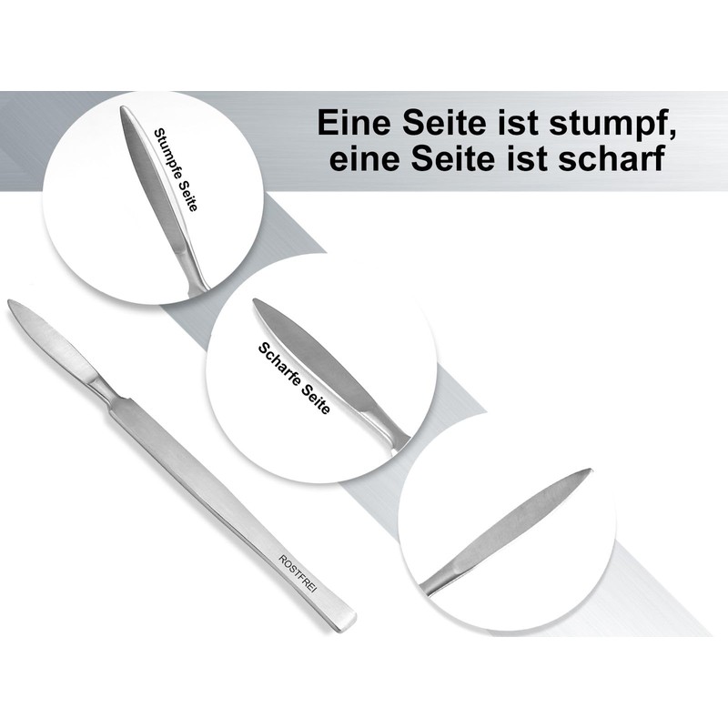 • Unique results: This sharpened scalpels are particularly suitable for removing calluses. Unsere Pediküre Schaber wurden in enger Zusammenarbeit mit ausgewählten Fußpfleger und Fußpflegerinnen und InstrumenteNrw hergestellt. They impress with their professional quality, as well as the simplicity in handling and design. Do you want to finally achieve a perfect result? No problem. Do it like the pros and choose our callus scrapers