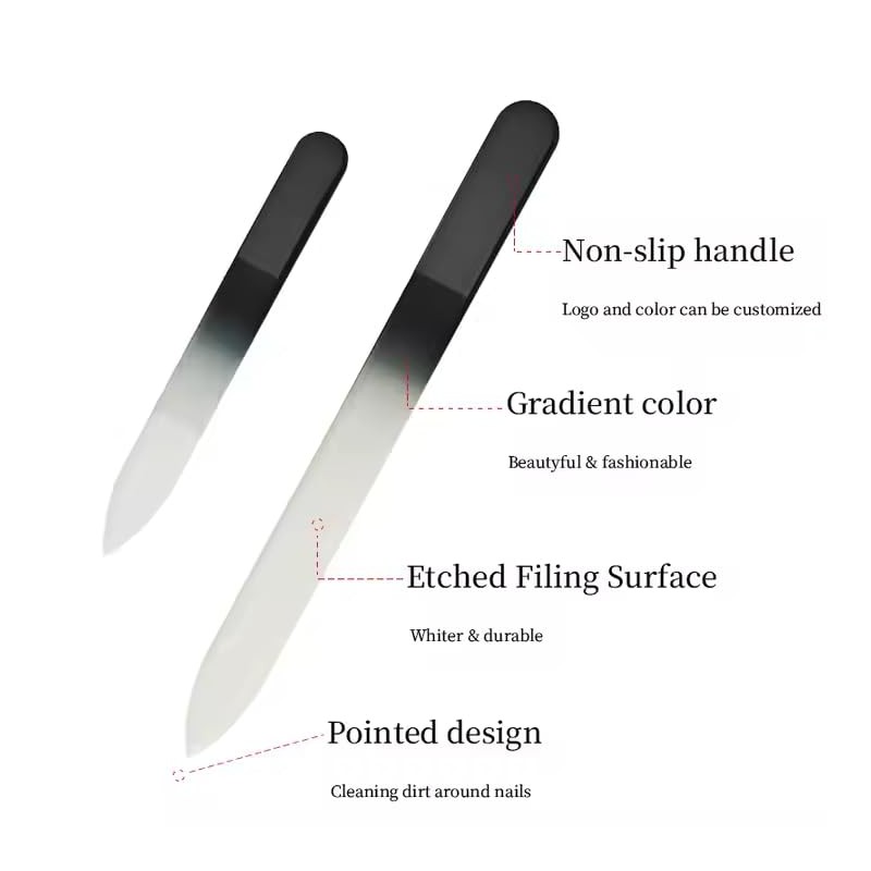 - Made of high quality tempered glass, the abrasive filing surface is gentle and effective and never wears out or becomes blunt. Unlike other ordinary nail buffers and files, our glass nail files are gentle on the nails and cuticles, expertly shape nails with comfort, easy & efficiency.
