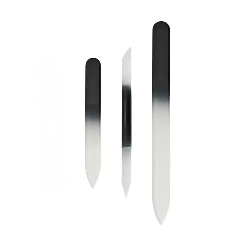 Professional Glass Nail File Set, 3-Piece Crystal Files with Case, Manicure Tools, Black Gradient