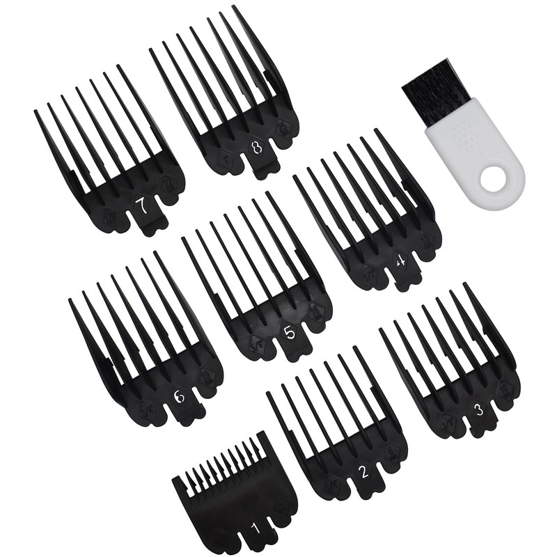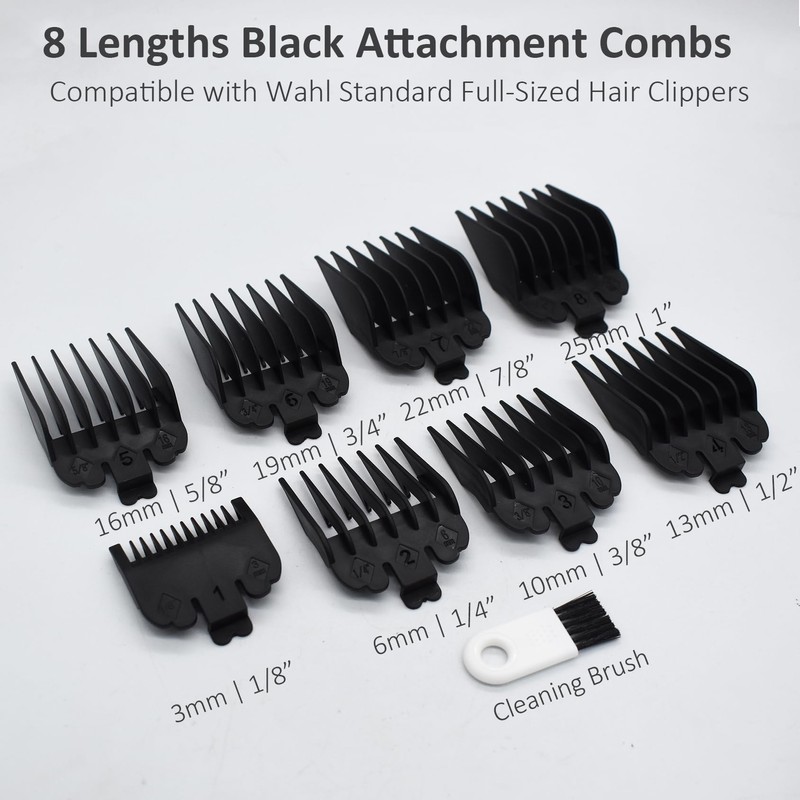- Package comes with 8 pieces guide combs. Color: Black, 8 Lengths: 3/6/10/13/16/19/22/25mm