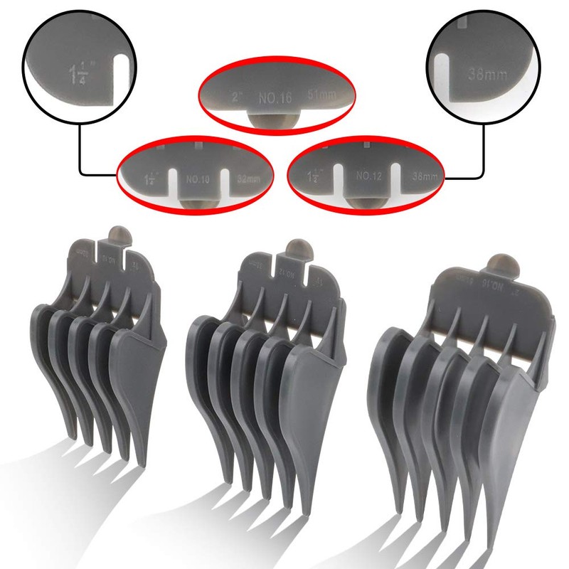 • Mega Hair Clipper Guards:NO.10 NO.12 NO.16 hair clipper guards, the biggest size of clipper guards on the market. Style your hair with this guard and avoid having the buzz cut look.