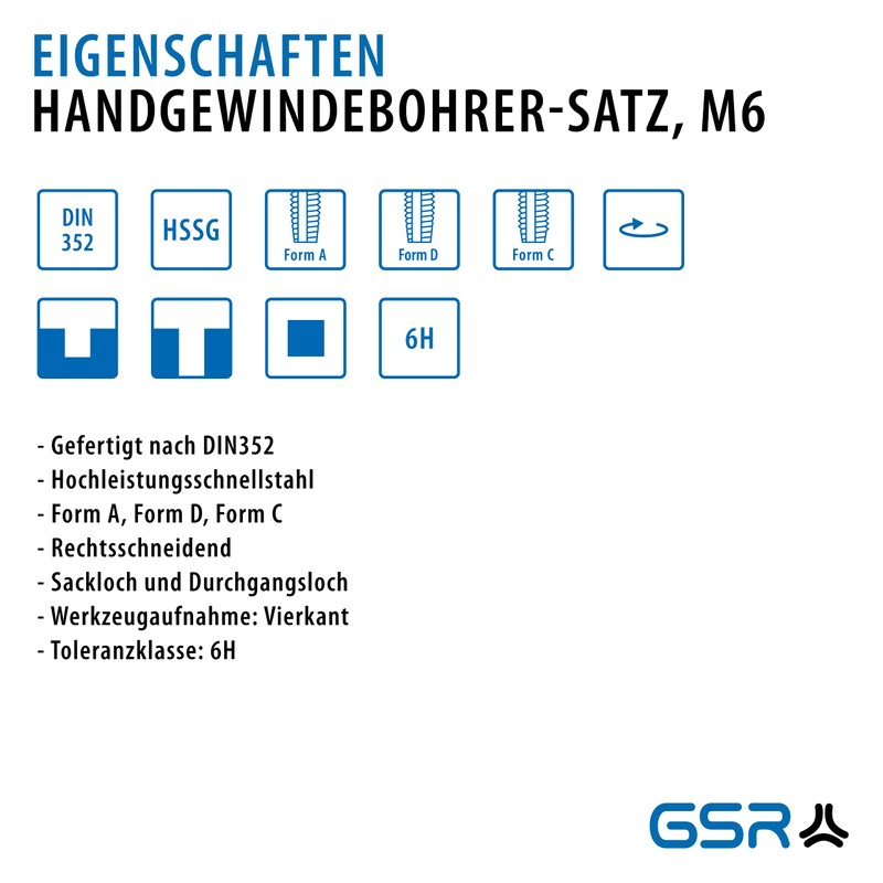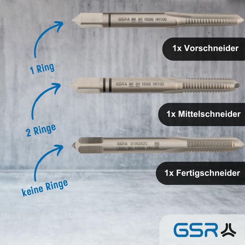 - EDELSTAHLBOHRER SET: Gewindeschneidsatz M6 für metrische Gewinde. Toleranzklasse 6H / ISO 2.
