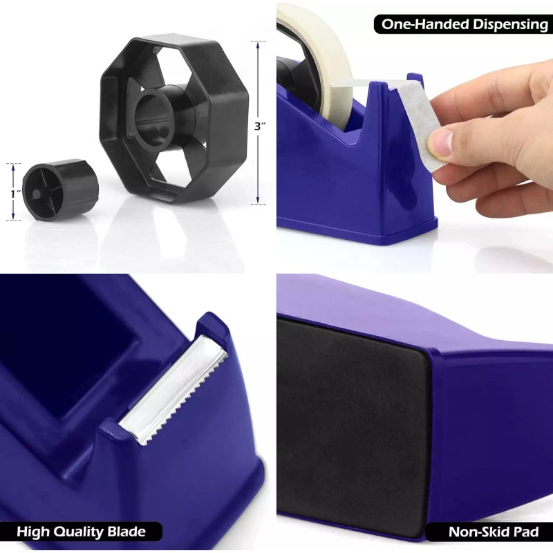 - 1. Desktop Tape Dispenser: With Interchangeable 1" core and 3" core, use them for small tapes and big tapes at any time