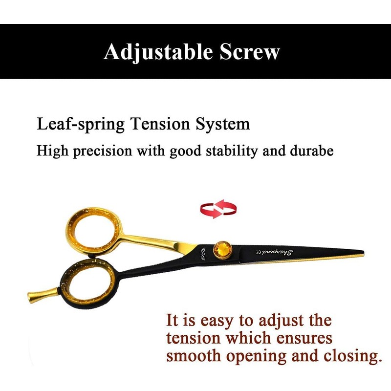 - COMFORTABLE TO HOLD, CLASSIC APPEARANCE. Our professional hair scissors are containing with an adjustment screw, you can effortlessly fine-tune this hair siccors set to your desire of tightness and tension. Its unique easy grip handle design allows the professional hair cutting scissors to cradle fingers, delivering a perfect haircut every time