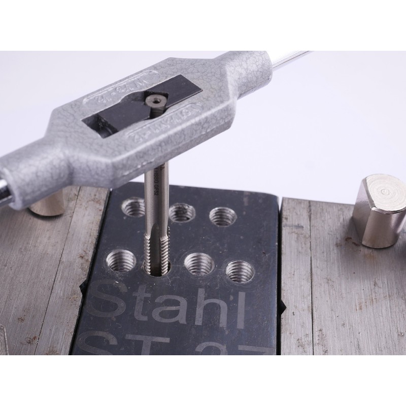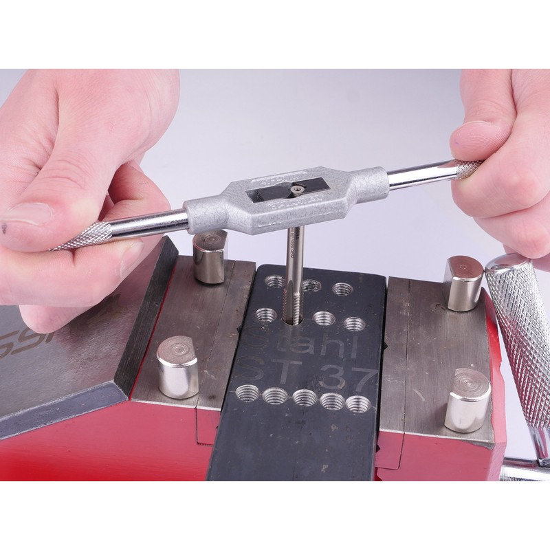 - GEWINDESCHNEIDEN: Mit Vor- und Fertigschneider zur Herstellung von metrischen Feingewinden. Das Werkzeug garantiert effektives und präzises Arbeiten.