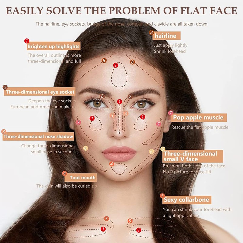 • ✔ EASY TO USE Apply the white tip to the middle of the nose to improve the shape of the nose and create a perfect nose. The darker side can be used to cover the sides of cheeks, face, nose and hairline to create a perfect face shape and make it more three-dimensional.