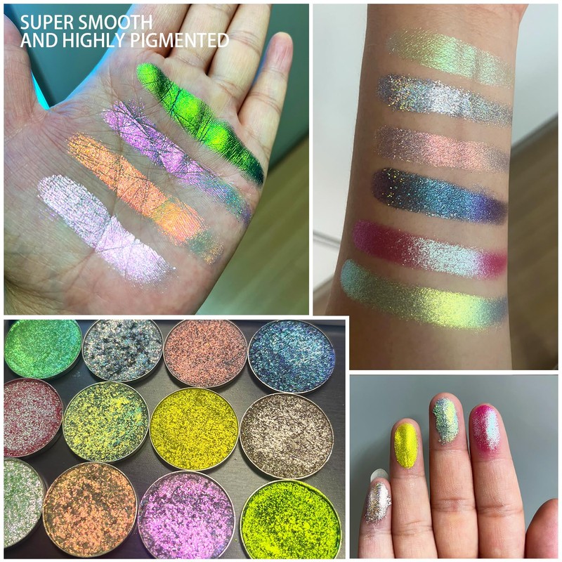 Professional multi-chrome eyeshadow,Handmade and long-lasting chameleon holographic,100% Vegan and Cruelty Free,Super Smooth and Highly Pigmented,Shine special colors (608)