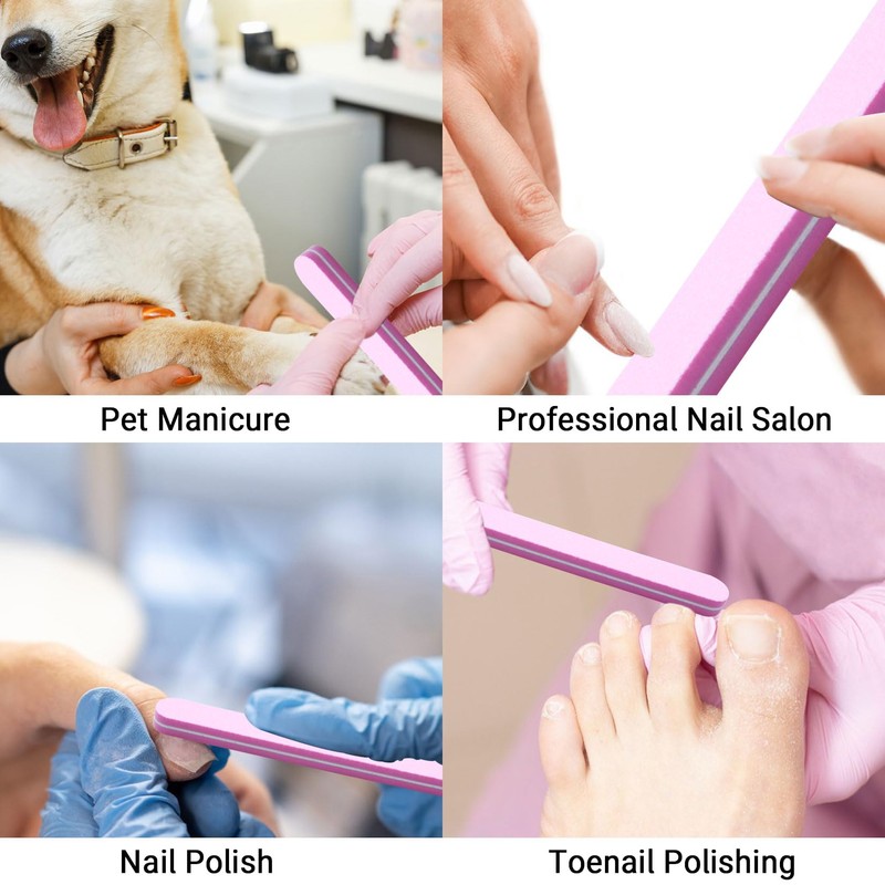 Professional Nail Files 100/180 Grit Nail File, Nail Buffer Block Double-Sided Thickened Fingernail Files Salon Manicure Tools Pet Grooming Tool (Pink, 4 Pcs)