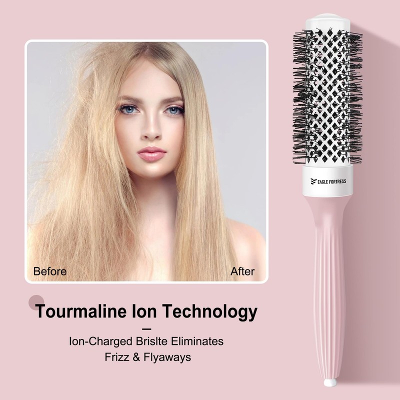 - Ceramic and Tourmaline Ion: Our round brush for blow out crafted with ceramic and tourmaline ion, the barrel rapidly heats up and maintains prolonged heat retention, resulting in faster styling and longer-lasting results.