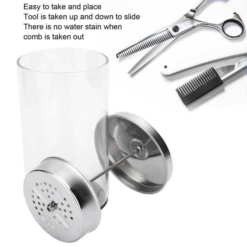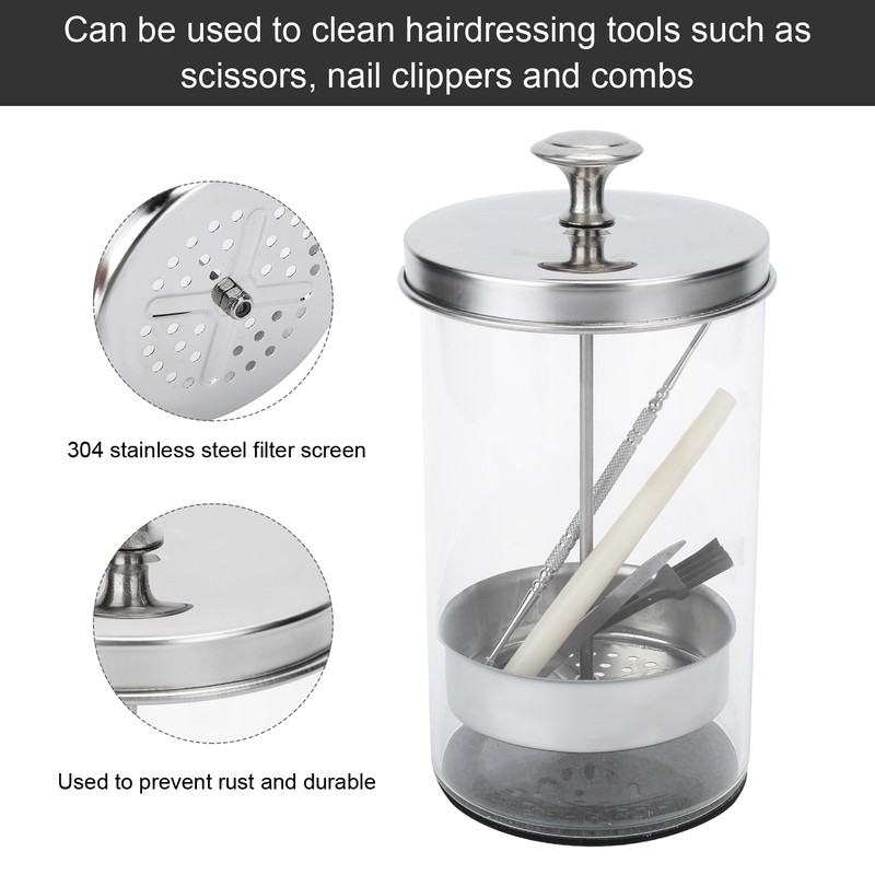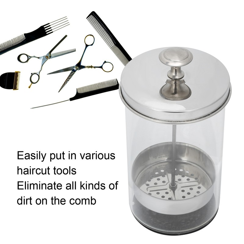 1、Easily put in various haircut tools to eliminate all kinds of dirt on the comb. 2、304 stainless steel filter screen is used to prevent rust and is durable. 3、Non‑slip silicone base can stand firmly on the table without sliding easily. 4、Easy to take and place, the tool is taken up and down to slide, so that there is no water stain when the comb is taken out. 5、It can be used to clean hairdressing tools such as scissors, nail clippers and combs.