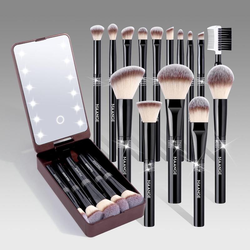 Professional Soft Makeup Brushes Set with LED Light, 15pcs/set Makeup Brush with Storage Box, Portable Makeup Accessories for Women & Girls