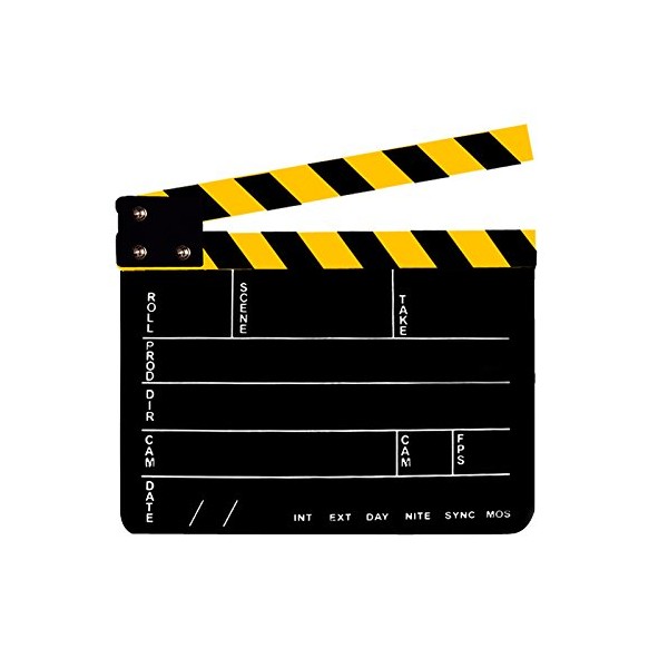 Professional Studio Camera Photography Video Acrylic Clapboard Dry Erase Director Film Movie Clapper Board Slate with Yellow/Black Sticks(9.6x11.7" /25x30cm), Black