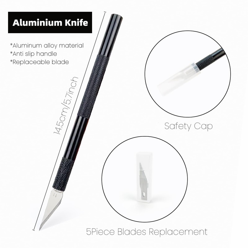 3️⃣ Safety First, Always Recessed blade cutter prevents accidental cuts during storage or use. Engraving knife with safety cap ensures blade protection and user safety when idle.