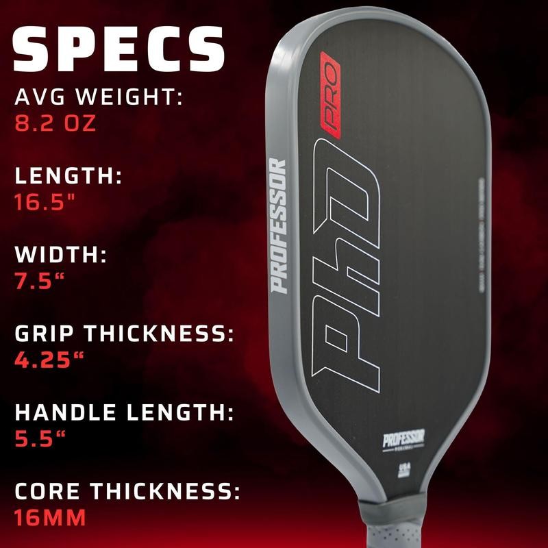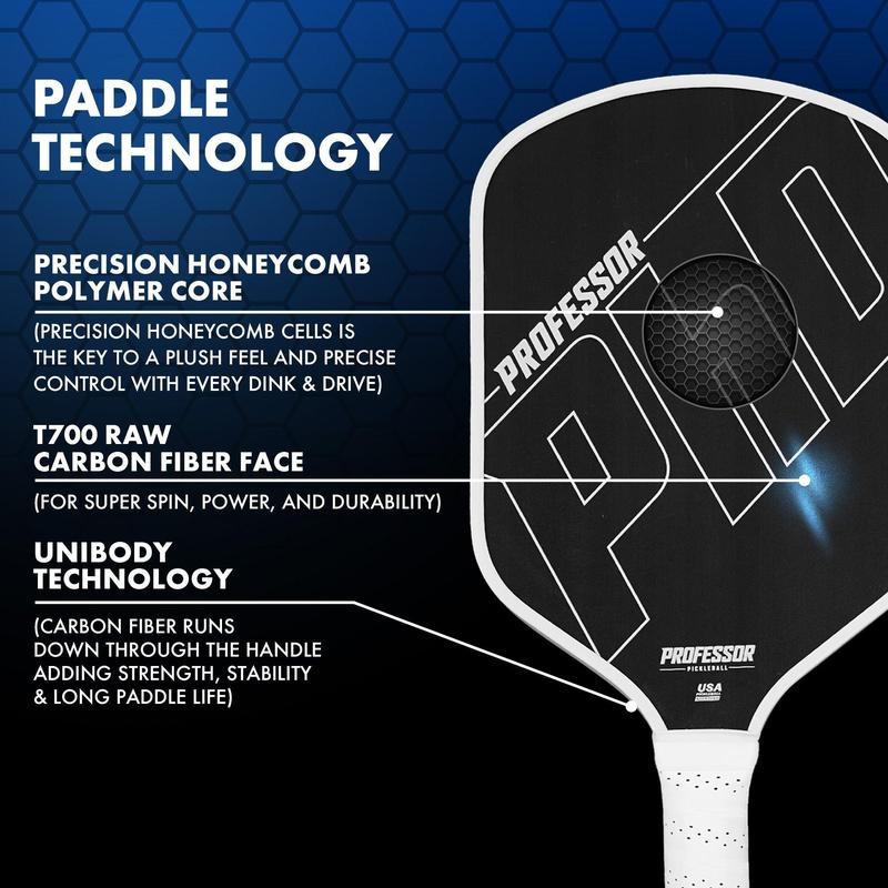 - Professor PhD Raw Carbon Fiber Pickleball Paddle - 16MM - USA Pickleball Approved - Honeycomb Core - Power & Control