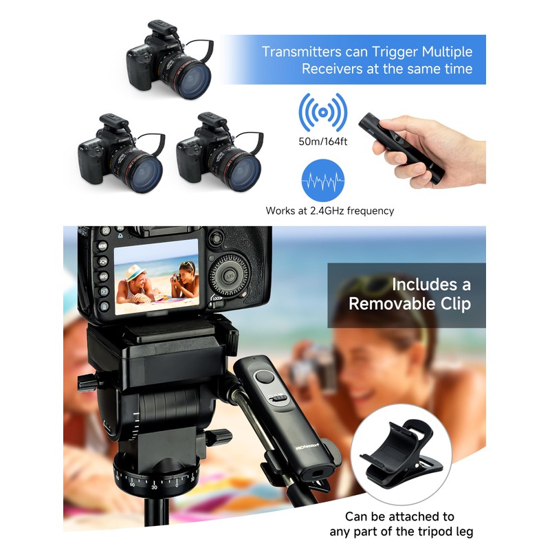 - [2.4GHz frequency & 16 channels]- This series remote control works at 2.4GHz frequency and has 16 available channels. It reduces camera shake and allows you to take pictures of subjects that are difficult to approach