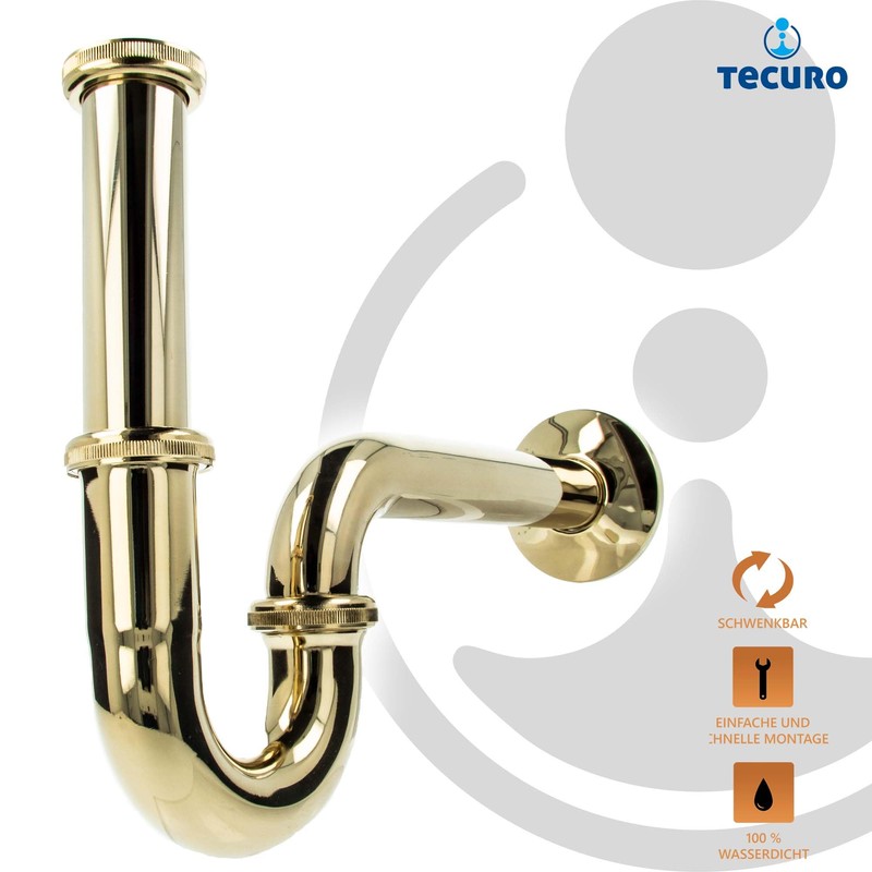 • ✅ tecuro PROFI - Röhrensiphon - Geruchsverschluss - Messing vergoldet