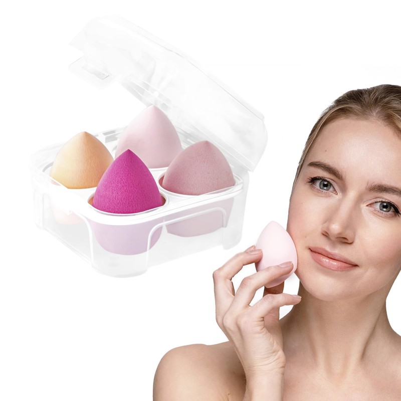 PROFICO Make Up Sponge Set, 4 Pieces Beauty Blender Foundation Sponges, Foundation Sponge, Sponge Blender for Liquid, Powder, BB Cream, 1 Container for Sponges (Pink)