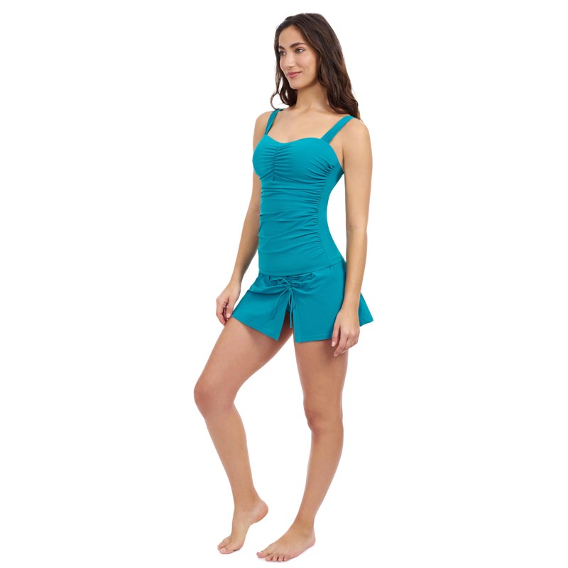 Profile by Gottex Tutti Frutti Solid D Cup Sized Center Ruched Tankini with Underwire Foam and Built-in Bra - Swim Essential, Jade, (36) D