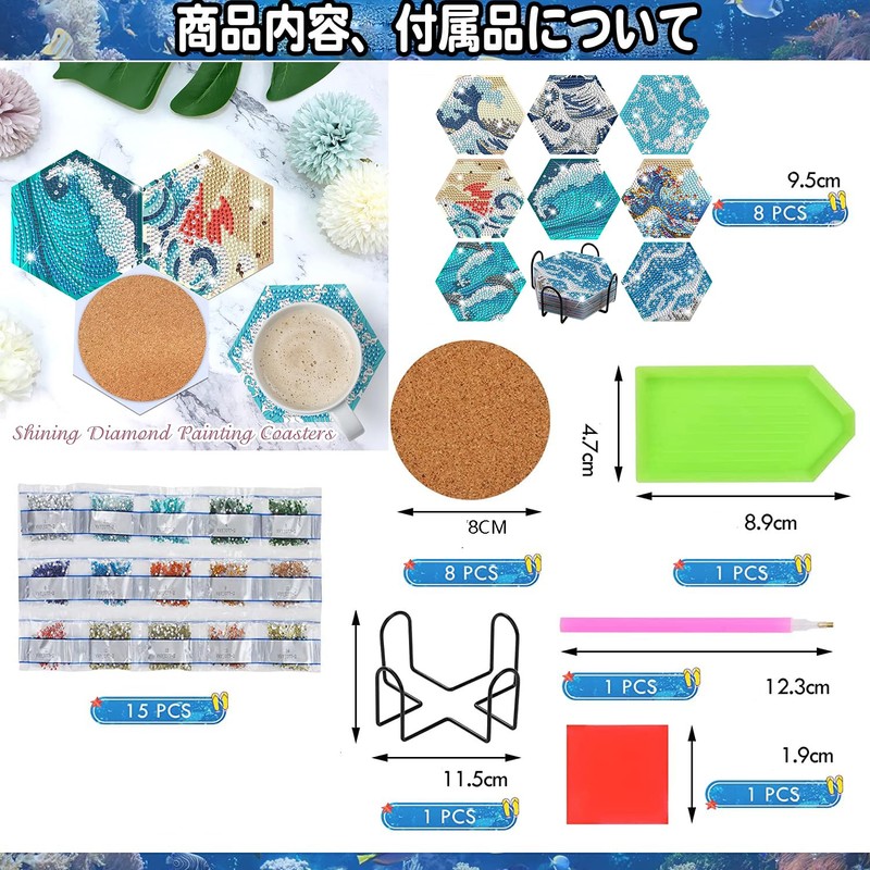 - 1. 【For Beginners】Profit.relaxed diamond art coasters are easy for beginners. Diamond beads can be used to create beautiful Japanese wave without painting knowledge or skills. It is recommended for those who want to create their own original coasters because they are easy to enjoy art