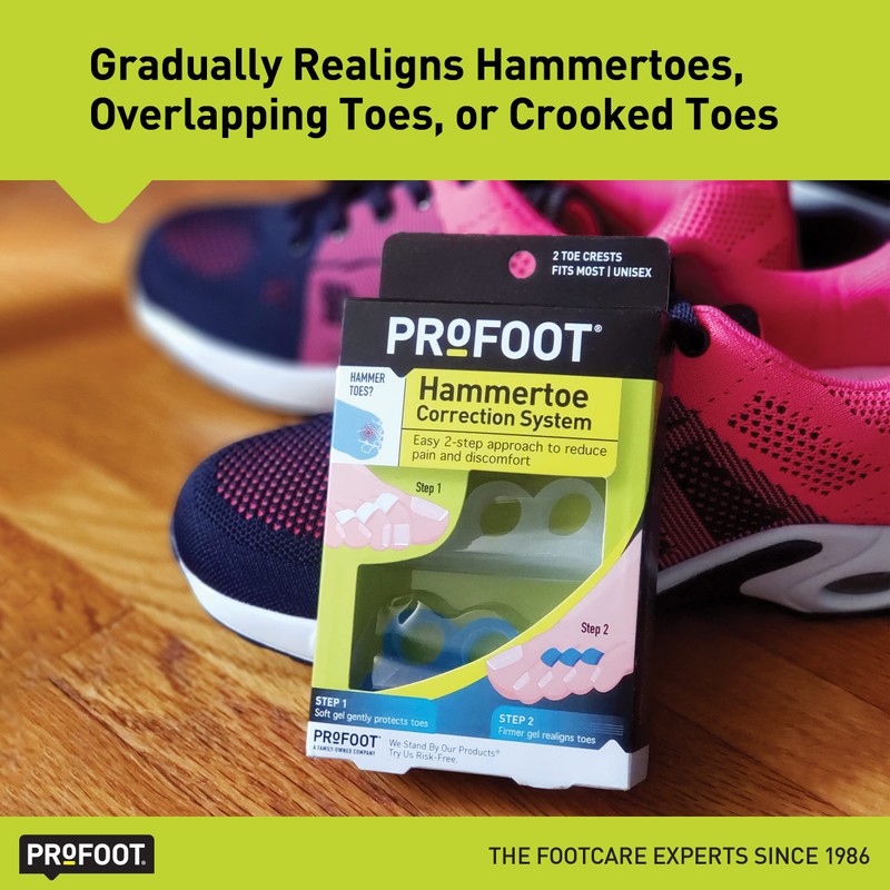 - Use the PROFOOT Hammertoe Correction System day or night to help to realign toes for instant hammertoe relief.