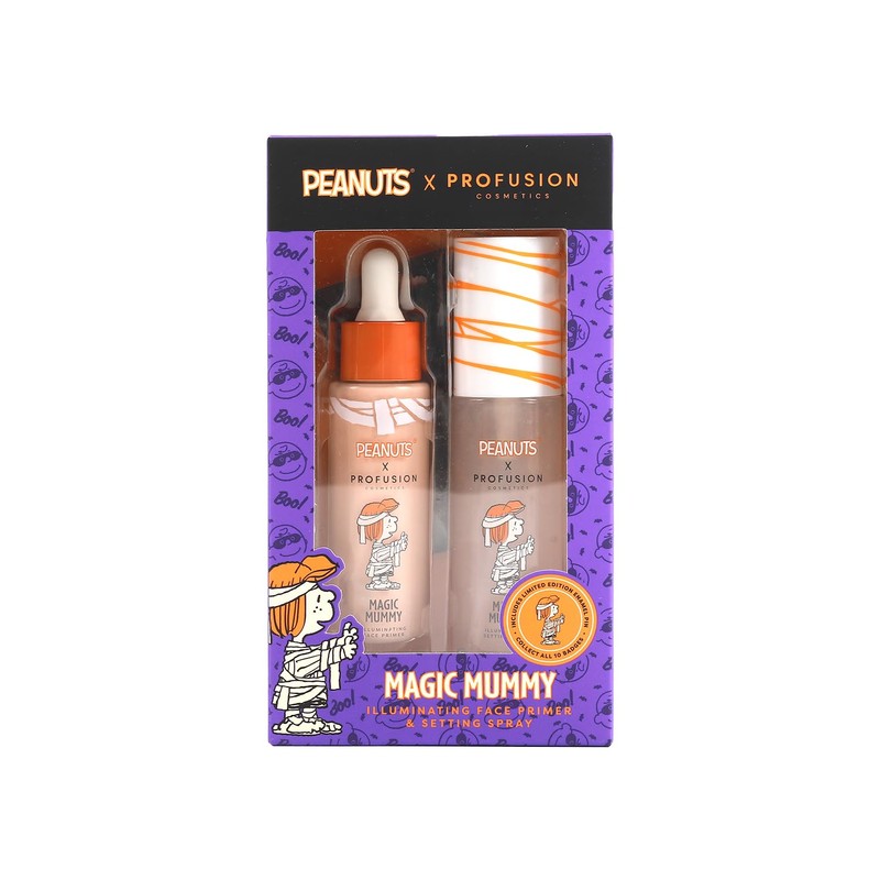 Profusion Cosmetics Peanuts Halloween Magic Mummy Illuminating Face Primer and Setting Spray, Lightweight and Long Wearing for Flawless, Smooth Canvas