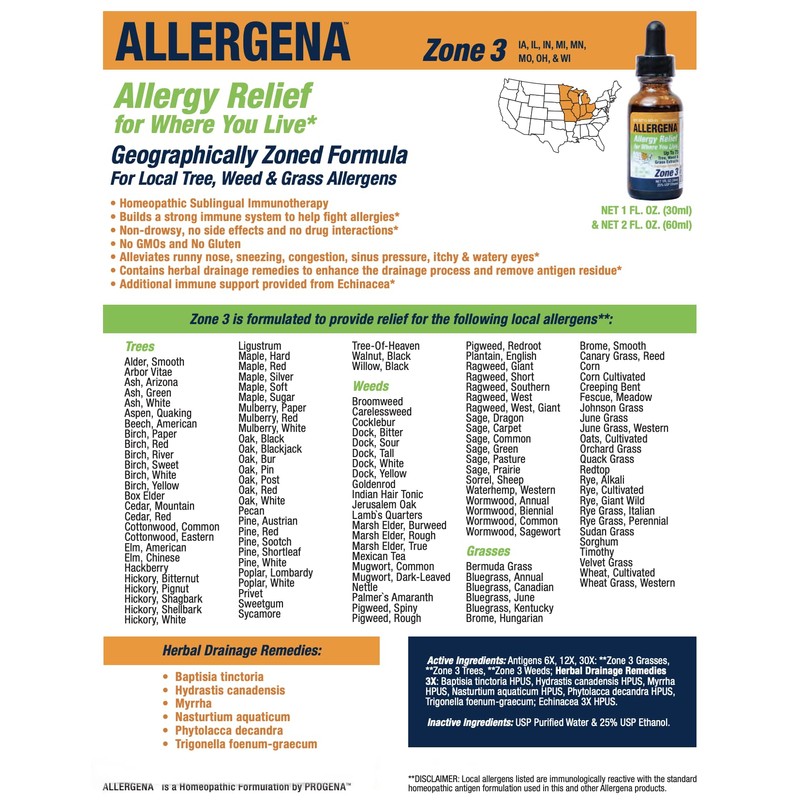 PROGENA Allergena - Allergy Relief Drops Zone 3-2 Ounce