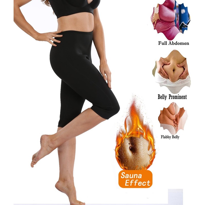 - Material: neoprene, microfibre, nylon, elastane. High waistband to make the abdominal muscles sweat more. Reduces abdomen, waist and thighs.