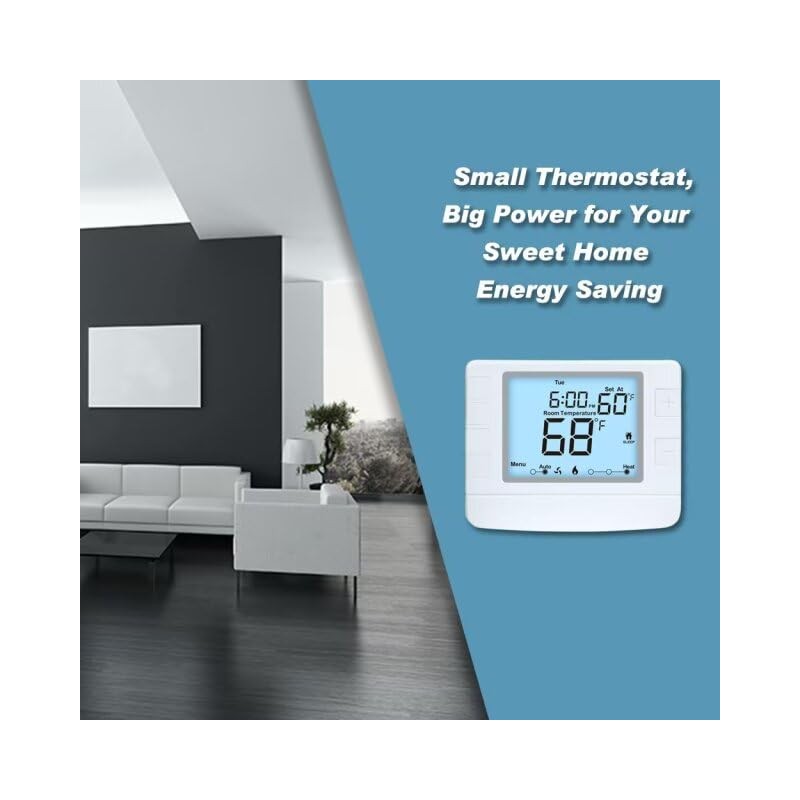 Programmable Auto Changeover Thermostat for House, 1 Heat/1 Cool, Extra Large...