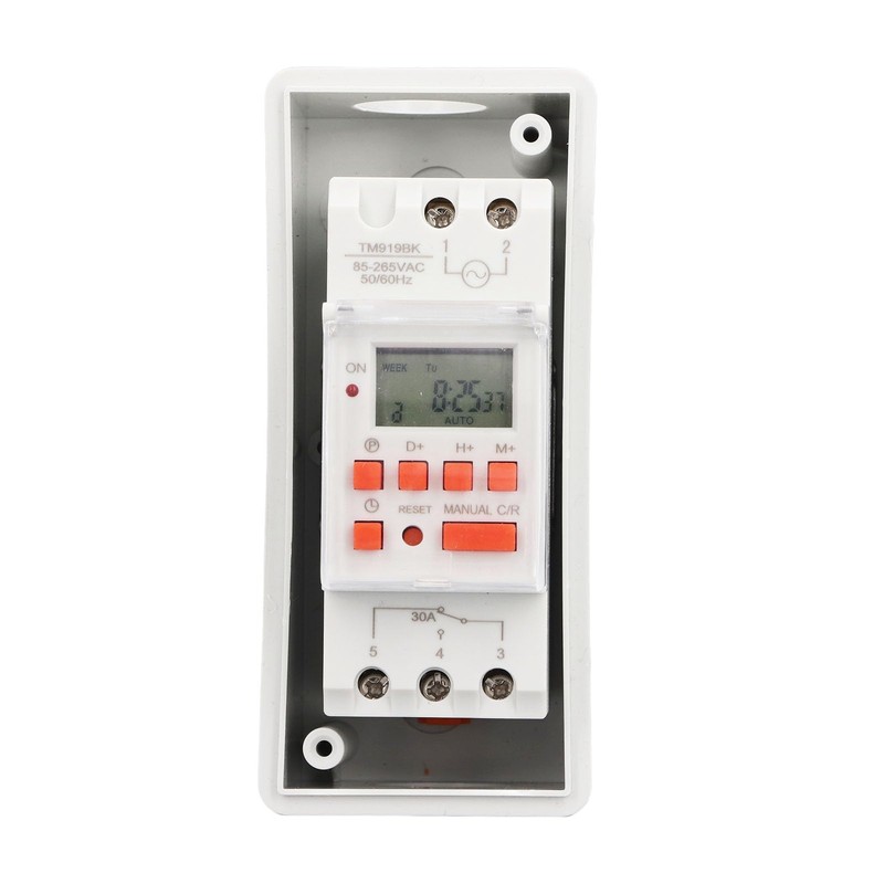• [Waterproof Box] Constructed with a waterproof PC casing that is flame retardant and resistant to UV, this timer switch is capable of withstanding outdoor conditions. Its two outlet holes prevent water ingress into the wiring box.