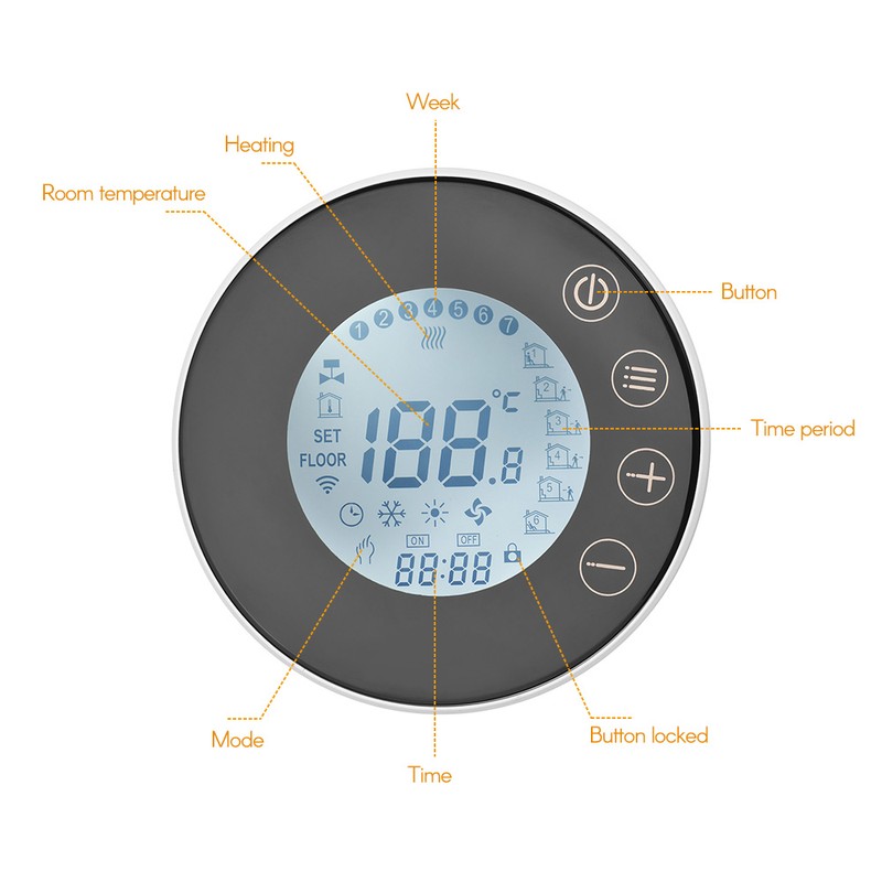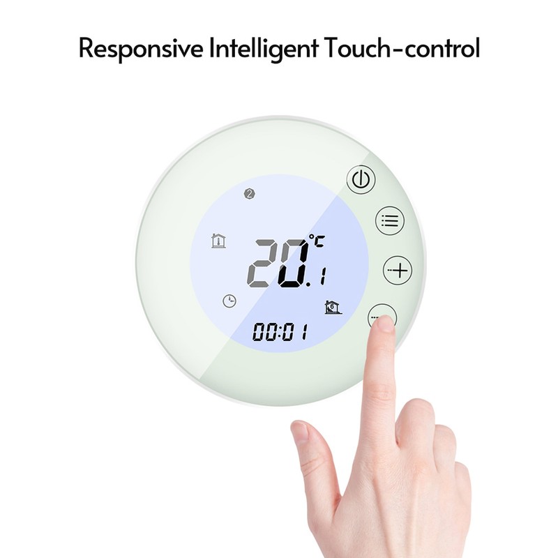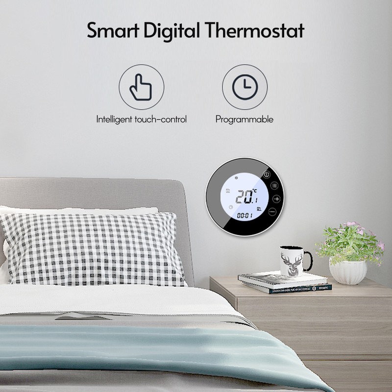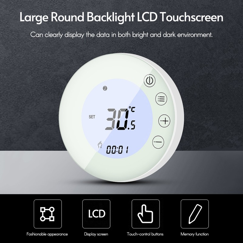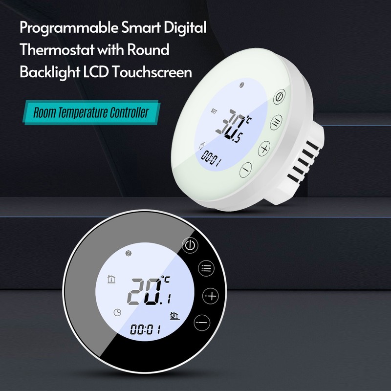 Programmable Smart Digital Thermostat Room Temperature Controller with Round Backlight LCD Touchscreen for Home School Office Hotel