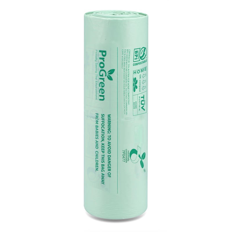 ProGreen 100% compostable bags made out of corn starch is the best bag to choose when it comes to industrial and home/backyard composting certified by US BPI & TUV AUSTRIA, The box is designed to pull out the bags easily, comes with a nice mint green color