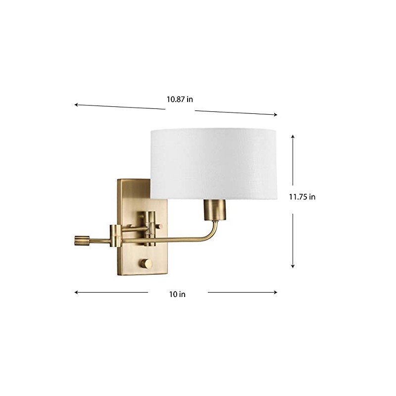 - VINTAGE BRASS FINISH: The light fixture's frame is coated in a classic vintage brass finish. An integral rotary switch on the backplate is included for convenient control.