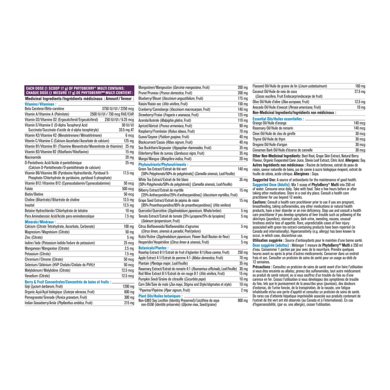 Progressive PhytoBerry Multi is a multivitamin powder containing over 70 key nutrients including all the vitamins, minerals and support nutrients found in Progressive MultiVitamins. Each scoop also provides a complete range of high ORAC berry and fruit concentrates, phytonutrients, antioxidants and plant oils found in Progressive PhytoBerry. Taking Phytoberry Multi provides nutrients equivalent to 6 to 8 servings of fruit and half of your daily vitamins and minerals. This helps to fight free radicals, and support immunity,
