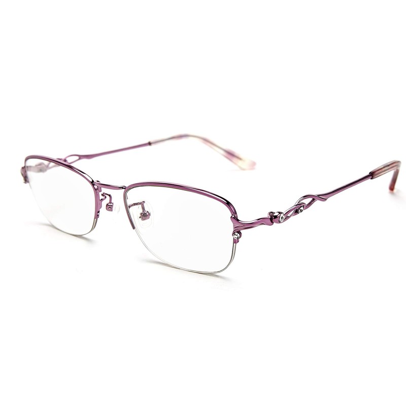 Progressive Multifocal Computer Reading Glasses Half-rimless Presbyopic Eyewear Blue Light Blocking Multifocus Readers Eyeglasses Women (Purple, 1.50)