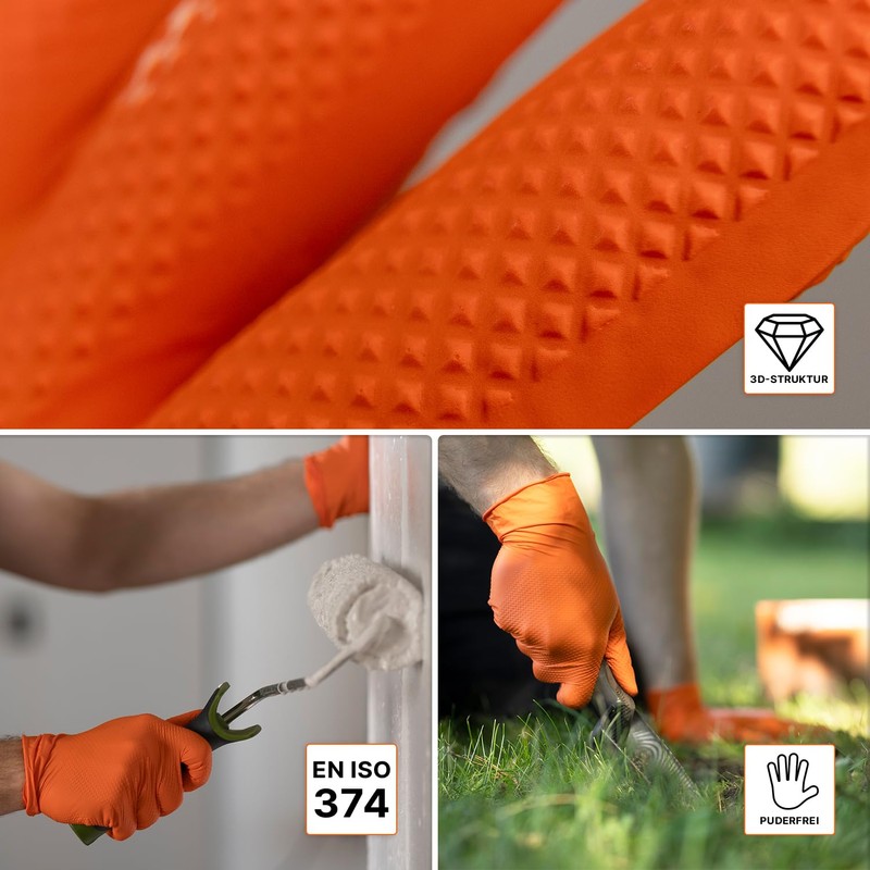 - Versatile: these nitrile gloves are not only mechanic gloves for the car workshop, but also protective gloves for construction and assembly work. At the same time, they are suitable as household and kitchen gloves.