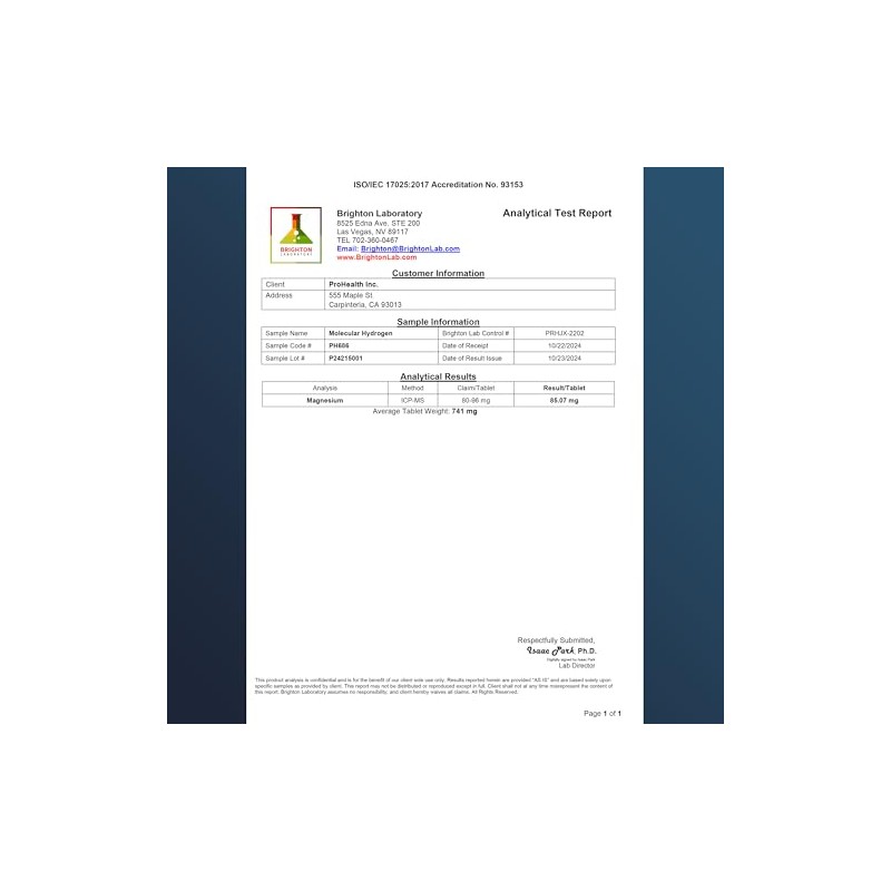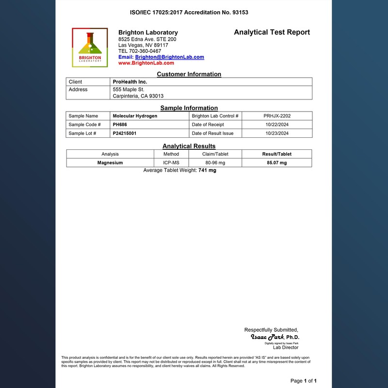 ProHealth Molecular Hydrogen Longevity Water Tablets | Clinically Studied | Third-Party Tested | 80 mg, 30 Tablets
