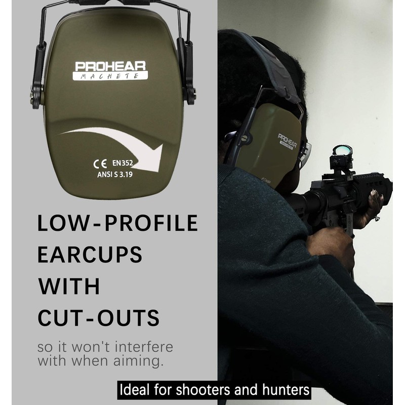 - [Ear Protection Safety Muffs] Featured sound dampening composite housing & foam prevents harmful sound from reaching your ears, and the specially designed foam ear pads, providing you with the maximum protection (NRR 26dB/SNR 31dB) to meet your requirements. The small form factor helps to keep your muffs from getting in the way of what you are doing, making you safer. Low profile cuts-out earcups are ideal for use with rifles and shotguns without more interference.